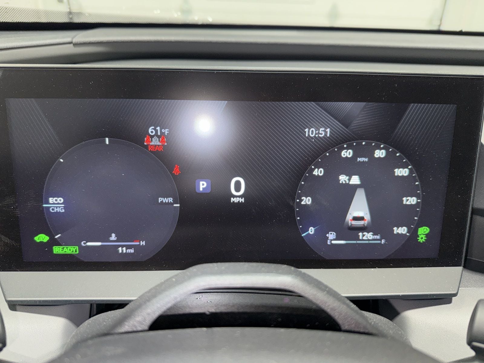 - 12.3-in. digital gauge cluster with customizable settings, integrated multimedia information, odometer, tripmeters, clock, outside temperature, rear passenger seatbelt indicators, fuel gauge, hybrid energy monitor, battery charge meter, fuel economy information, trip timer, shift-position and scheduled maintenance indicators, and warning messages