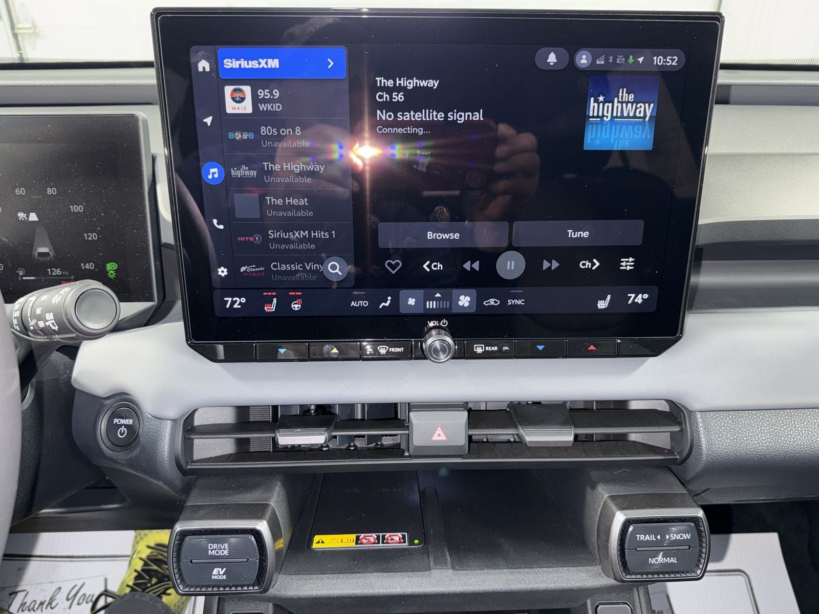 - Center console with covered storage compartment, reversible armrest/console tray, two cup holders, drive mode (Trail, Snow, Normal and EV mode 22), auto LSD/VSC, Electric Parking Brake (EPB) 8 and automatic Brake Hold 11 controls, and front storage tray