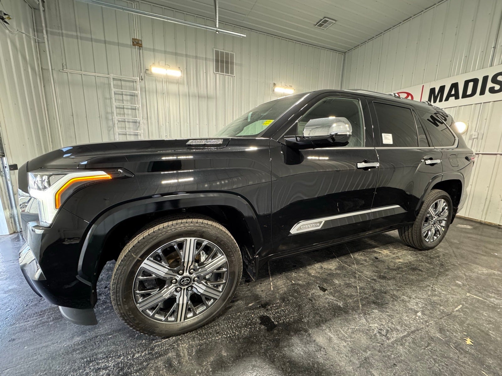 - Bright-chrome "SEQUOIA" rear door badge; chrome "CAPSTONE" door badge, garnish and window molding; color-keyed overfenders