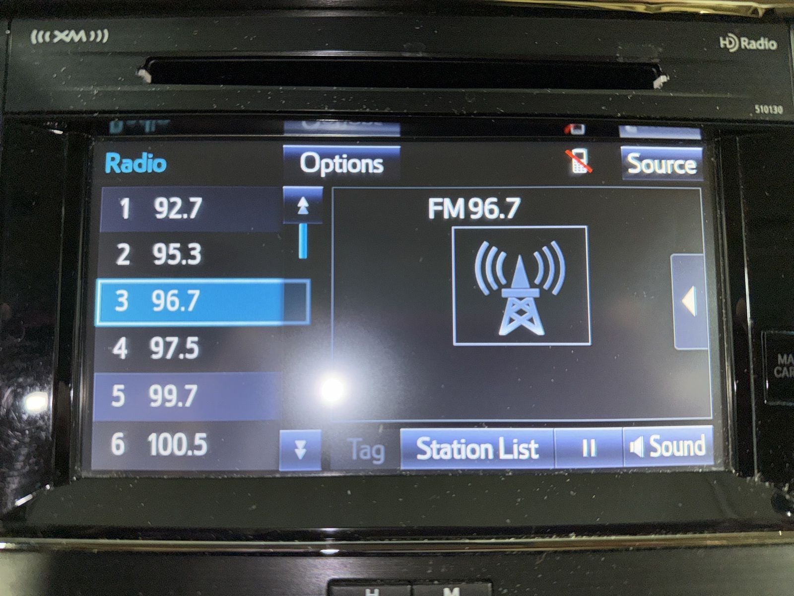 - Radio: Entune Premium Audio w/Integrated Nav -inc: AM/FM CD player w/MP3/WMA playback capability, Entune Multimedia Bundle, 7-inch high resolution touch-screen w/split-screen display, 9 speakers, amplifier, auxiliary audio jack, USB port w/iPod connectivity and control, advanced voice recognition, hands-free phone capability, phone book access and music streaming via Bluetooth® wireless technology, Siri Eyes Free, Entune App Suite, HD Radio, HD Radio predictive traffic and Doppler weather overlay, AM/FM cache radio, SiriusXM All Access Radio w/3-month complimentary trial, Gracenote album cover art and integrated backup camera w/projected path